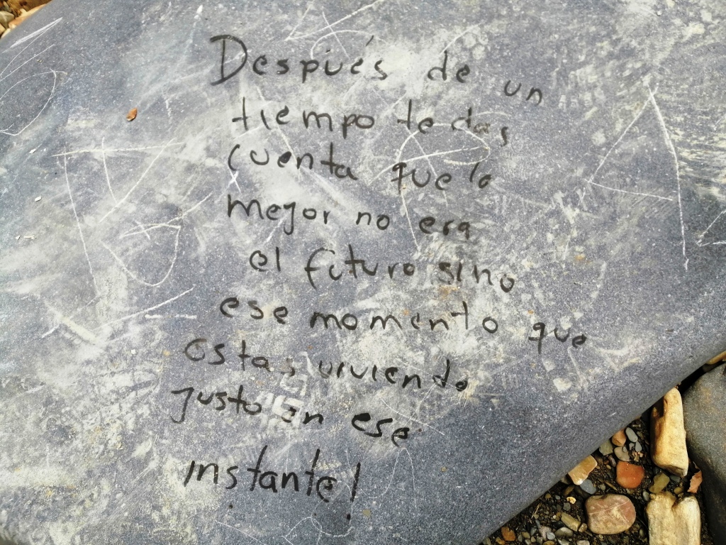 Alguien se puso a filosofar en la quebrada y anotó con libertad gramatical en una piedra: